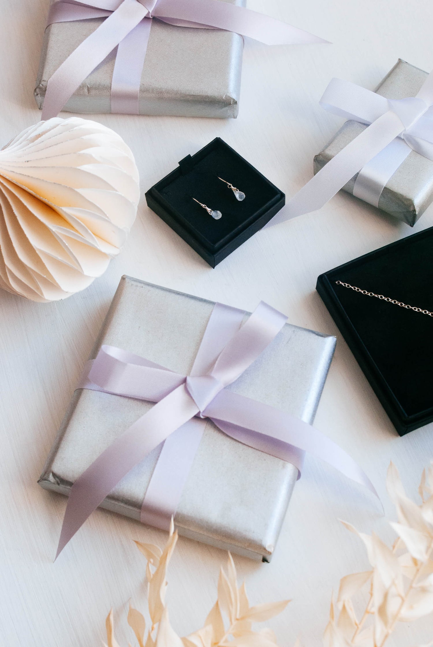 Your jewellery arrives in a sustainable gift box or pouch, ready to give on Christmas day. Add luxury, recycled gift wrapping for that special touch.
